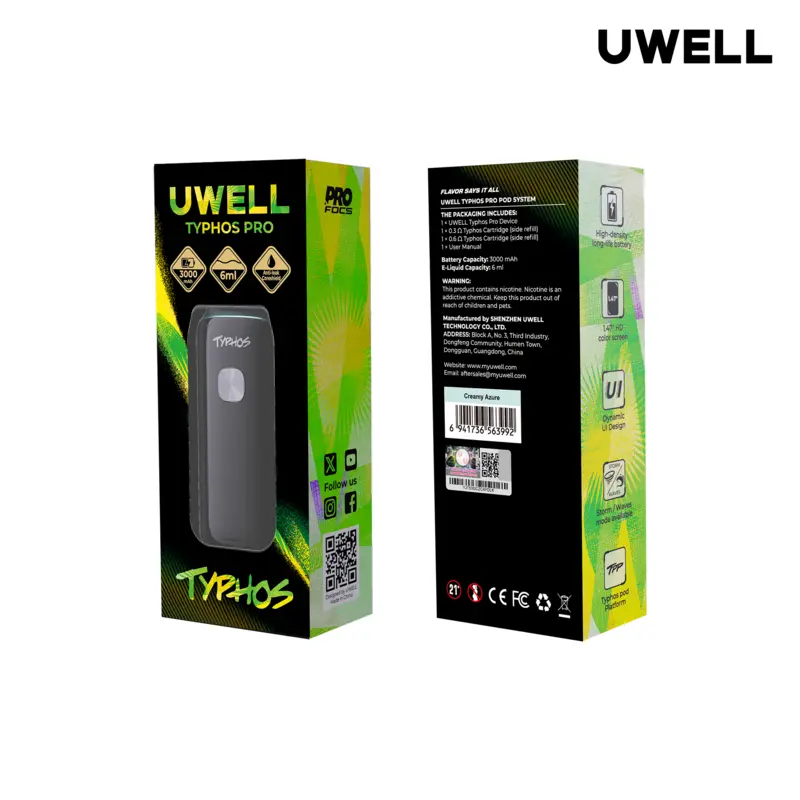 Uwell Typhos Pro Pod Mod Kit 45W a device offer mighty performance, innovative technology and premium design. Vibrant 1.47-inch HD display dynamic UI animations and real dual mesh coil technology. As one of the most advance pod mod in Pakistan, it delivers up to 45W output, smart airflow control, and Pro-Focus flavor technology, every puff is smooth, dense, and satisfying.